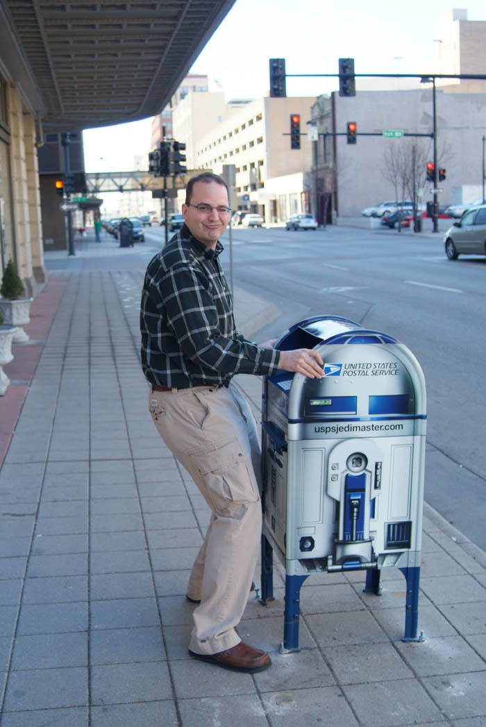 Anyway, one of the other people that posts there is a reporter for a Kansas City television station. I may have posted a picture of me enjoying the R2D2 mailbox outside the office building I work in. Apparently, this struck some sort of geek chord with Ms. Koppelman to file a story. The picture below is linked to it.